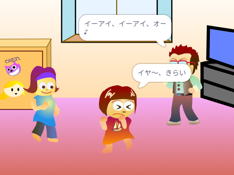 似たようなフレーズだけど、音階が上がって行ったりすると盛り上がりを感じ、サビに繋がってスパークすれば気持ちよさがはじけます。ですがイーアイイーアイオーは盛り上がったと思ったら結局イーアイイーアイオーに戻り、残るのはフラストレーションだけですね。子供が嫌がるのも分かる気がします。