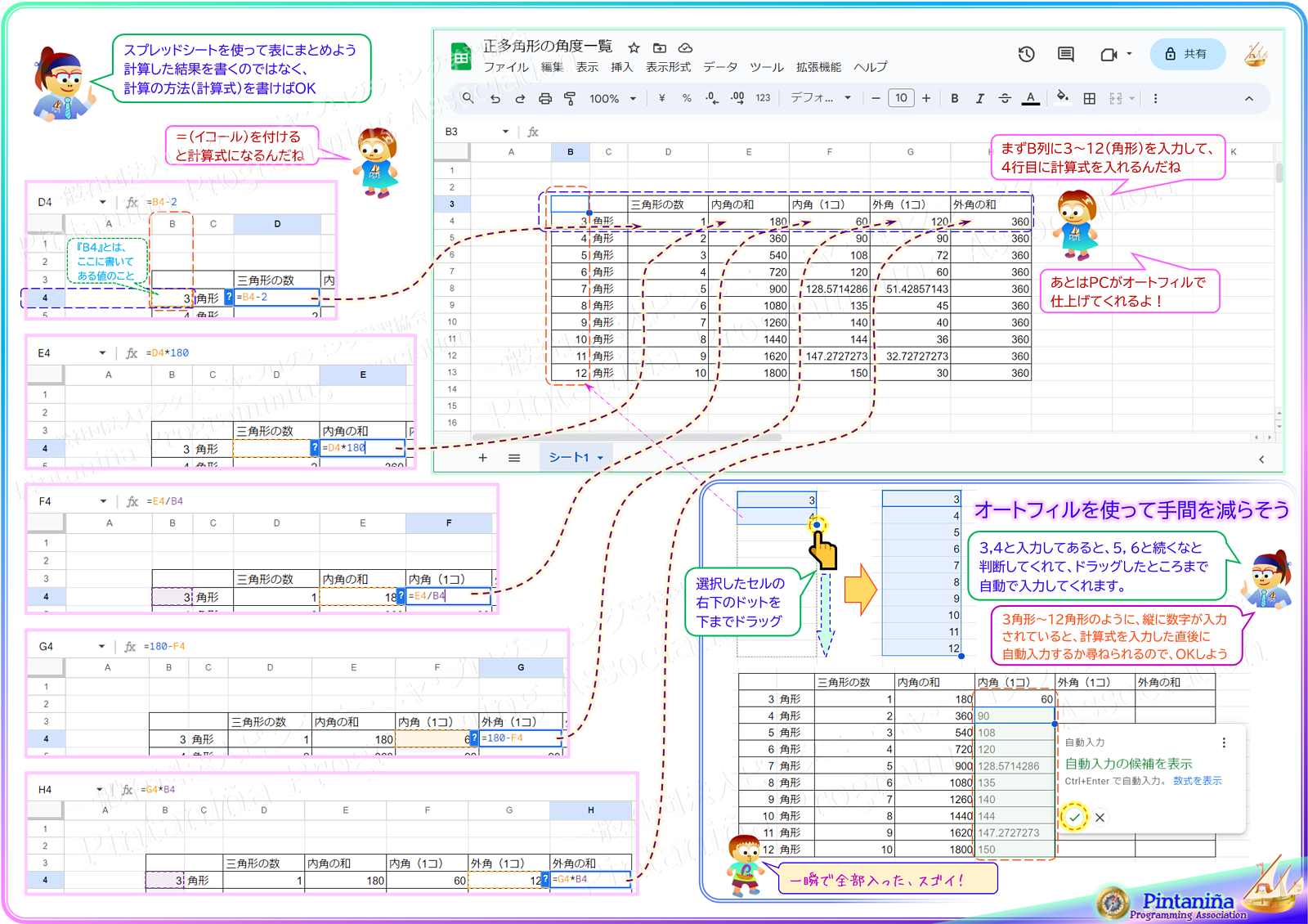 計算の仕方は同じで、角の数のように使う値だけ違う場合は『表計算』を使うと便利です。