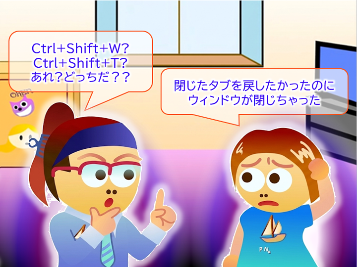 よくやってしまうのが閉じたタブを復元しようとしてShift + Ctrl + W を押してしまうパターン。タブを閉じるのがCtrl + W なので、その反対はShiftを押しながらという常識がここでは通用しないんですよね。TABU(タブ)の復元だからTって覚えよう。ちなみにCtrl+Tで新しいタブが開きますね。新しい⇔古い(以前の)って意味合いでShiftの意義を再定義しましょうか。