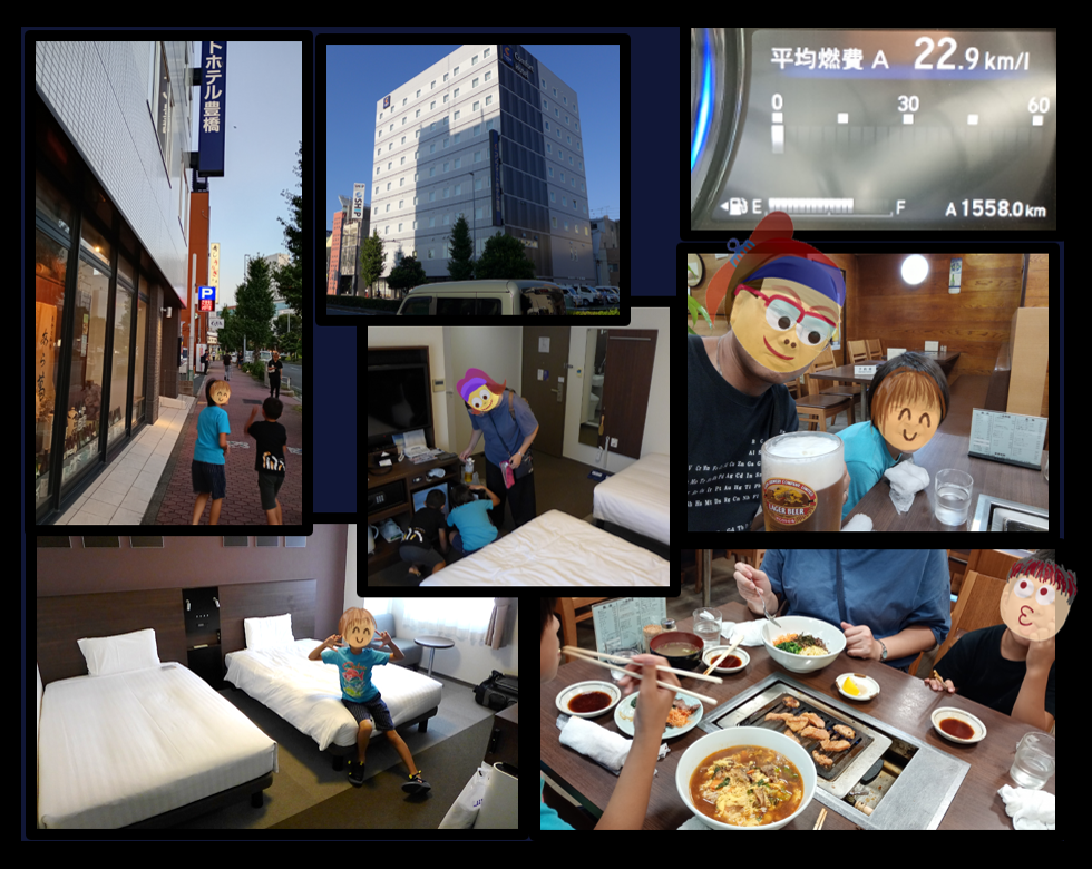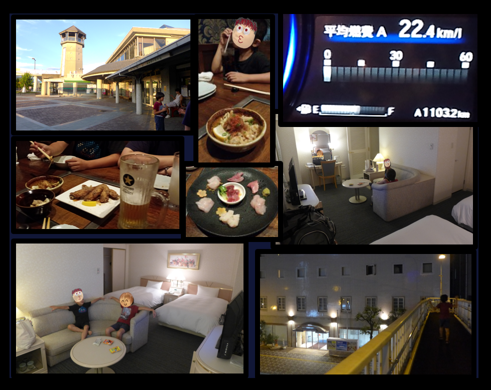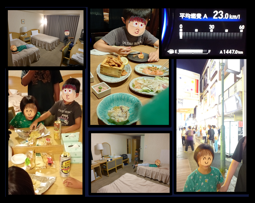 約1750kmを走って戻ってきた我が家、到着は18時頃でした。車の平均燃費は22.9km/L、上出来でしょう。荷物やお土産を家の中に運び、お土産確認大会の始まりです。
