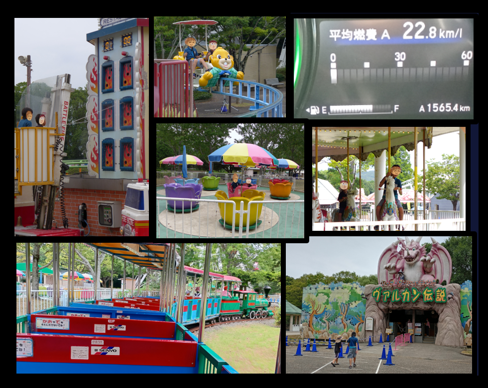 この他にも大観覧車やのんほいサーキットと言う本格的なカートがあったり、100円を入れると動くバッテリーカーなどがあります。夏の暑い日なので観覧車はパスしましたが、高いところから公園全体を見渡せるのはナカナカ良さそうです。普段はもっとお客さんがたくさんいるらしいですが、今回はホントいいタイミングでした、遊園地ゾーンを大満喫しました!