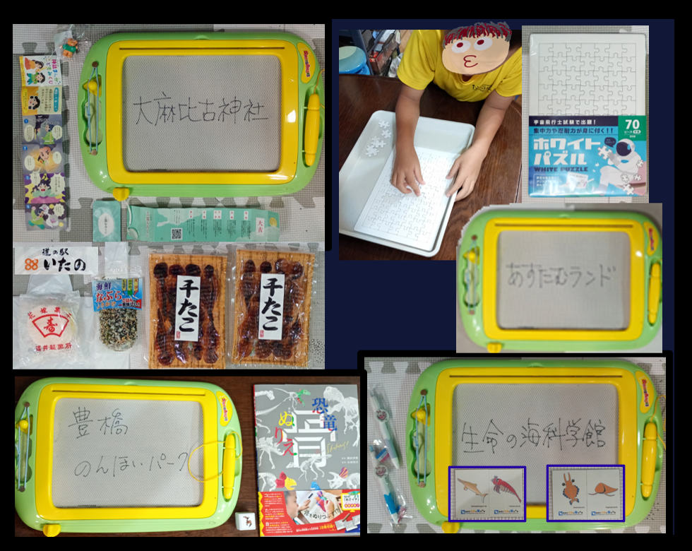 企画展を出たらお土産コーナーへ。ここでポコちゃんがずっと欲しがっていたホワイトパズルを発見!7×10の70ピースのホワイトパズル、B5判で中級らしいです。帰宅後父とポコちゃんでやってみましたが、やり方を見つけたら後は根気の勝負でしたね。勘だけでやったらどうなっていたのでしょう?でも、大事な教訓が詰まった真っ白なパズル。これを解いた経験は、ポコちゃんの自信につながるハズです!